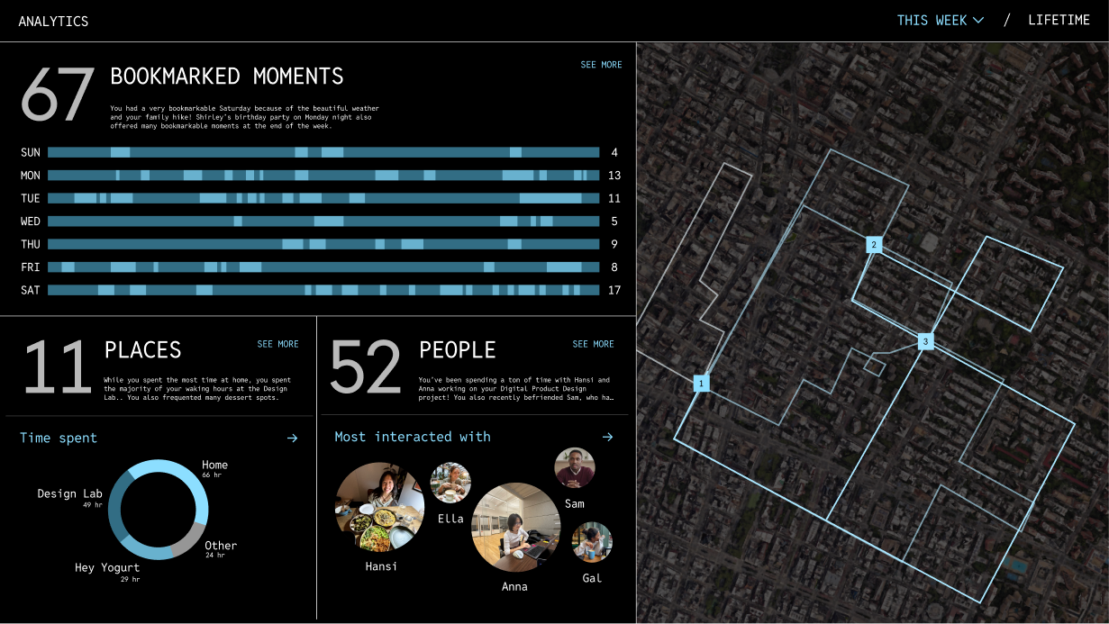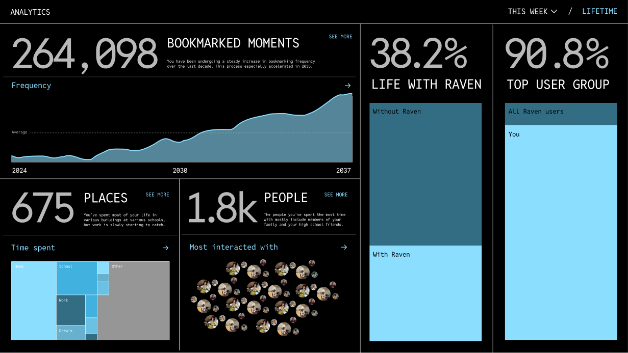 A recording implant from a speculative future in which humans rely upon technological assistance to remember their own experiences. An exploration of large-scale data management, novel interfaces, privacy, and ethics.